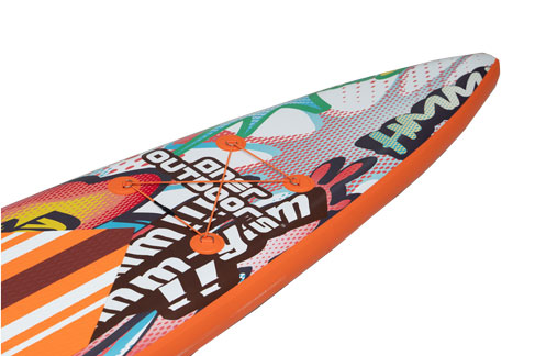 Cette planche de course est fabriquée dans un matériau tissé renforcé, plus léger et plus rigide que les matériaux à points de chute ordinaires, ce qui en fait un choix idéal pour les amateurs de planches de course. Ses ailerons sont également plus rigides et fabriqués dans un meilleur matériau que ceux des planches ordinaires, permettant une plus grande vitesse dans l'eau et aidant les coureurs à surmonter les obstacles. Le design éblouissant du tableau attirera certainement l’attention. La palette de couleurs orange, associée à un style de lettrage unique, plaira à coup sûr aux personnes à la mode et branchées. La technologie d'épissage EVA haut de gamme garantit une qualité exceptionnelle dans les moindres détails.