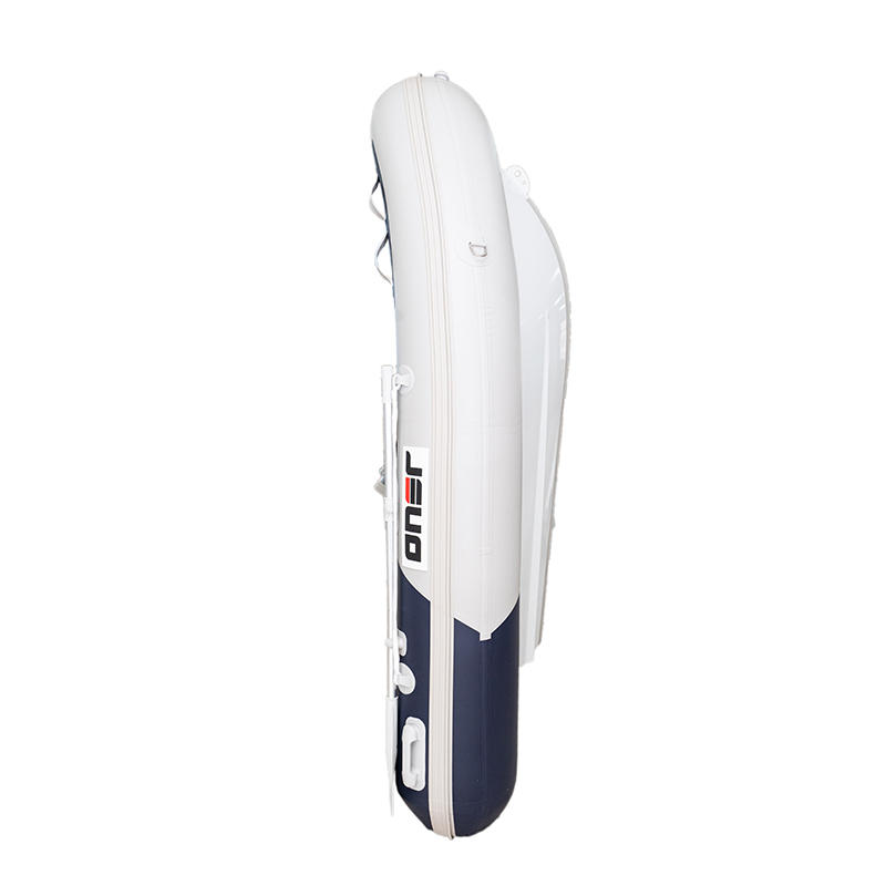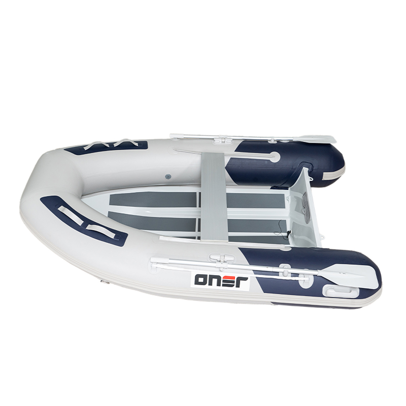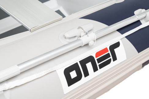 L'ONER RIB utilise un alliage d'aluminium 5083 de 3 mm d'épaisseur pour sa coque, avec une largeur interne de 80 cm, offrant suffisamment d'espace pour plus de passagers. Les pontons gris clair et bleu foncé donnent au bateau un look sophistiqué. Le PVC de 0,9 ou 1,2 mm, ou Hypalon, sont disponibles sous forme de pontons.