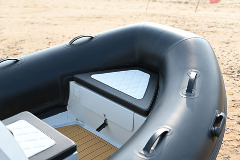 Ce RIB de luxe est disponible en trois tailles : 420 cm, 450 cm et 470 cm, avec une largeur totale de 205 cm, ce qui permet d'obtenir beaucoup plus d'espace intérieur. Les doubles sièges arrière intégrés, parfaitement intégrés à la coque, respirent le luxe et la sophistication. Profitez de merveilleuses vacances en mer en famille !