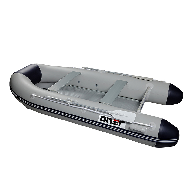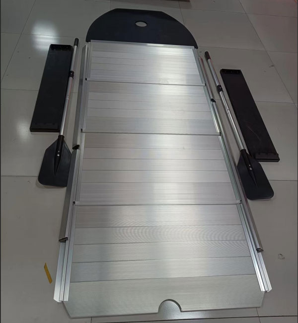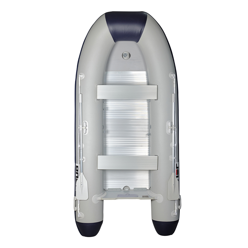 Le plancher en aluminium comprend deux plaques de selle en alliage d’aluminium, deux pagaies en alliage d’aluminium, un sac en contreplaqué et un sac bateau. Il utilise une base rigide en contreplaqué en alliage d’aluminium de 12 mm d’épaisseur, offrant une rigidité et une dureté nettement supérieures à celles des autres bateaux pneumatiques pliants. La quille gonflable au fond crée un fond profond en « V », améliorant encore la vitesse et la stabilité du bateau dans l’eau.