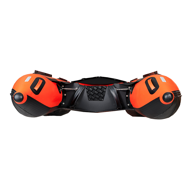 Le bateau de sauvetage ONER est un véritable bateau de sauvetage gonflable en PVC à fond roulant, ne nécessitant aucun assemblage de fond. Il suffit d'ouvrir la boîte en carton, de déplier et de poser la coque à plat, puis de gonfler directement. Le fond utilise un matériau en tôle plus léger et plus résistant à la corrosion que l'alliage d'aluminium, supportant indirectement le poids du bateau tout en augmentant sa résistance à la corrosion par l'eau de mer et en prolongeant sa durée de vie. Il s'agit d'un bateau pneumatique spécial développé en interne par ONER OUTDOORS, représentant une nouvelle technologie. Une quille gonflable au fond garantit que le bateau peut toujours naviguer sur la mer à grande vitesse.